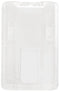 A convenient card-carrying accessory, the B-Holder is a rigid one-card badge holder that will protect your card from bends and creases while still clearly displaying its face. The vertical B-Holder features a frosted front to reduce light and sun exposure and is available in a variety of colors. A handy thumb-notch on the back makes it easy to remove your badge or card for scanning or swiping.