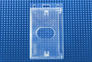 Part number 1840-6500 data/credit-card size, rigid plastic holders are made to hold one 30mil smart chip or magnetic stripe card. Holders feature a thumb-notch for quick card removal and slot and chain holes for easy attachment to lanyard, reel or chain.