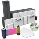 - 100 PVC cards and YMCKO ribbon for immediate printing.